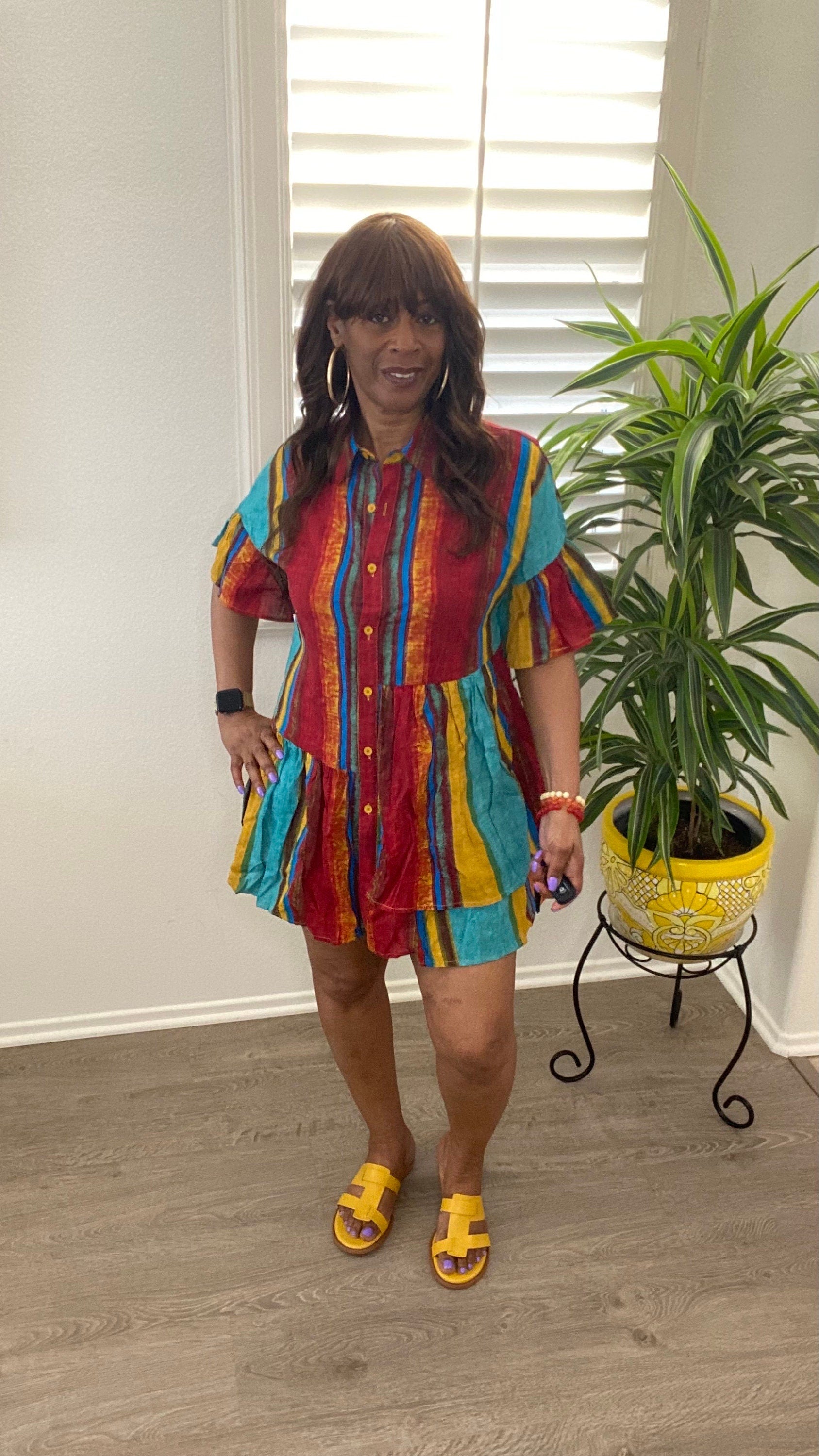 Short Ruffled Sleeve,Button Down,Summer Dress,Patchwork Design,High Waist,Casual Tunic Dress,Front Button Blouse Dress,Color Block.Mini T-Shirt Dress,Casual,Loose Style.