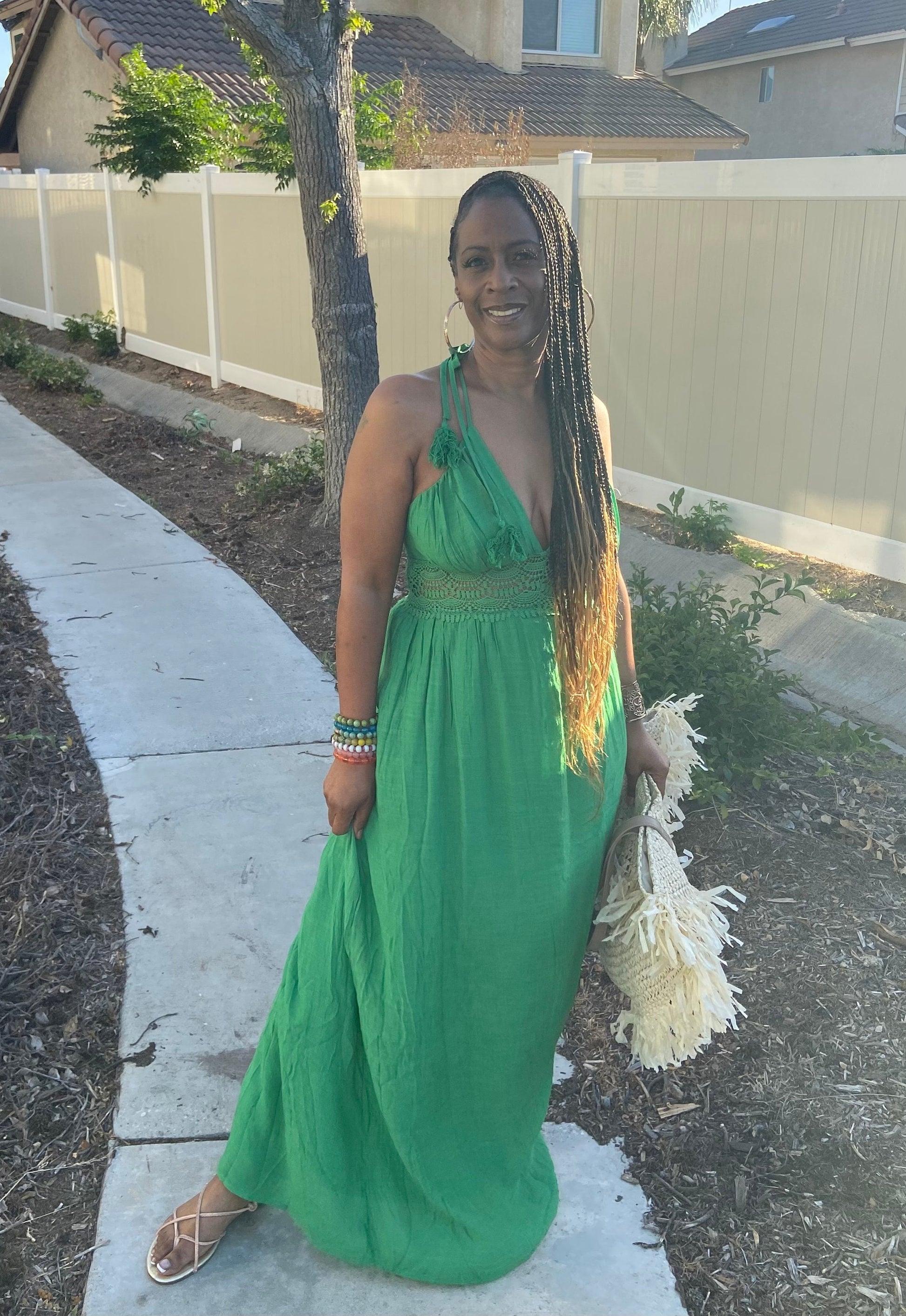 MAXI DRESS WITH LACE WAIST AND BACK DETAIL