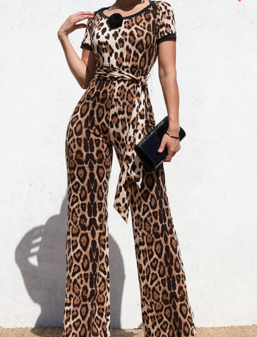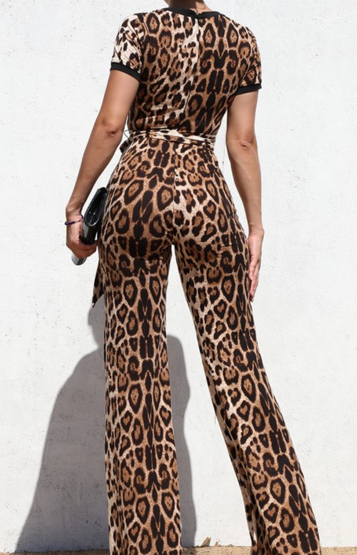 BLOCKED KNIT LEOPARD JUMPSUIT