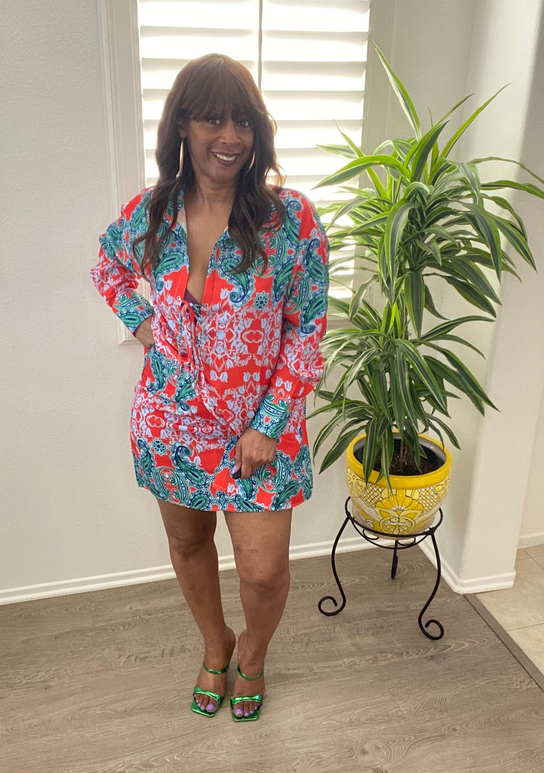 This Floral Shirt Dress is perfect for beach vacations, dating, parties, etc, can also be worn as a summer swimsuit cover up or daily wear.