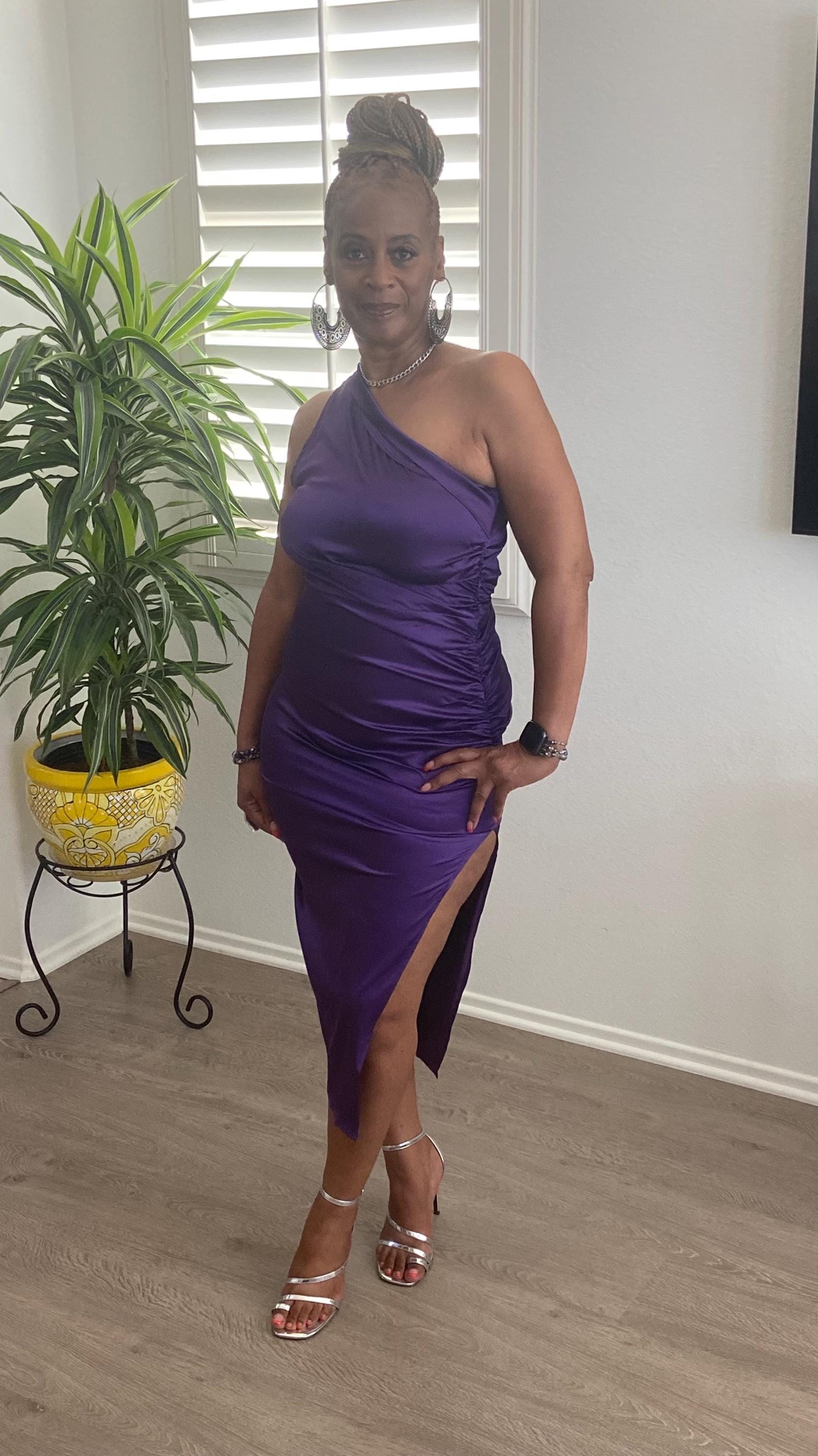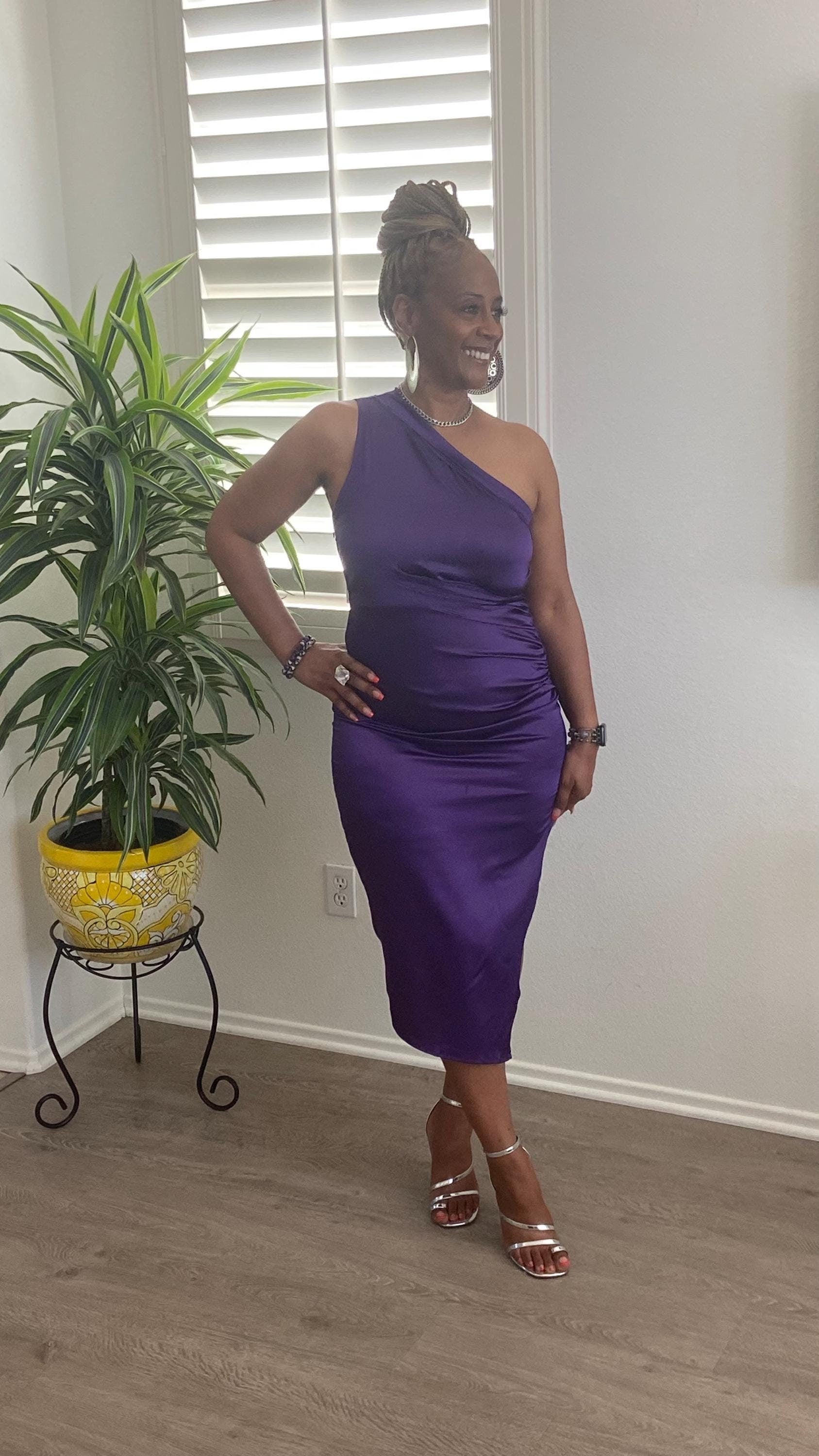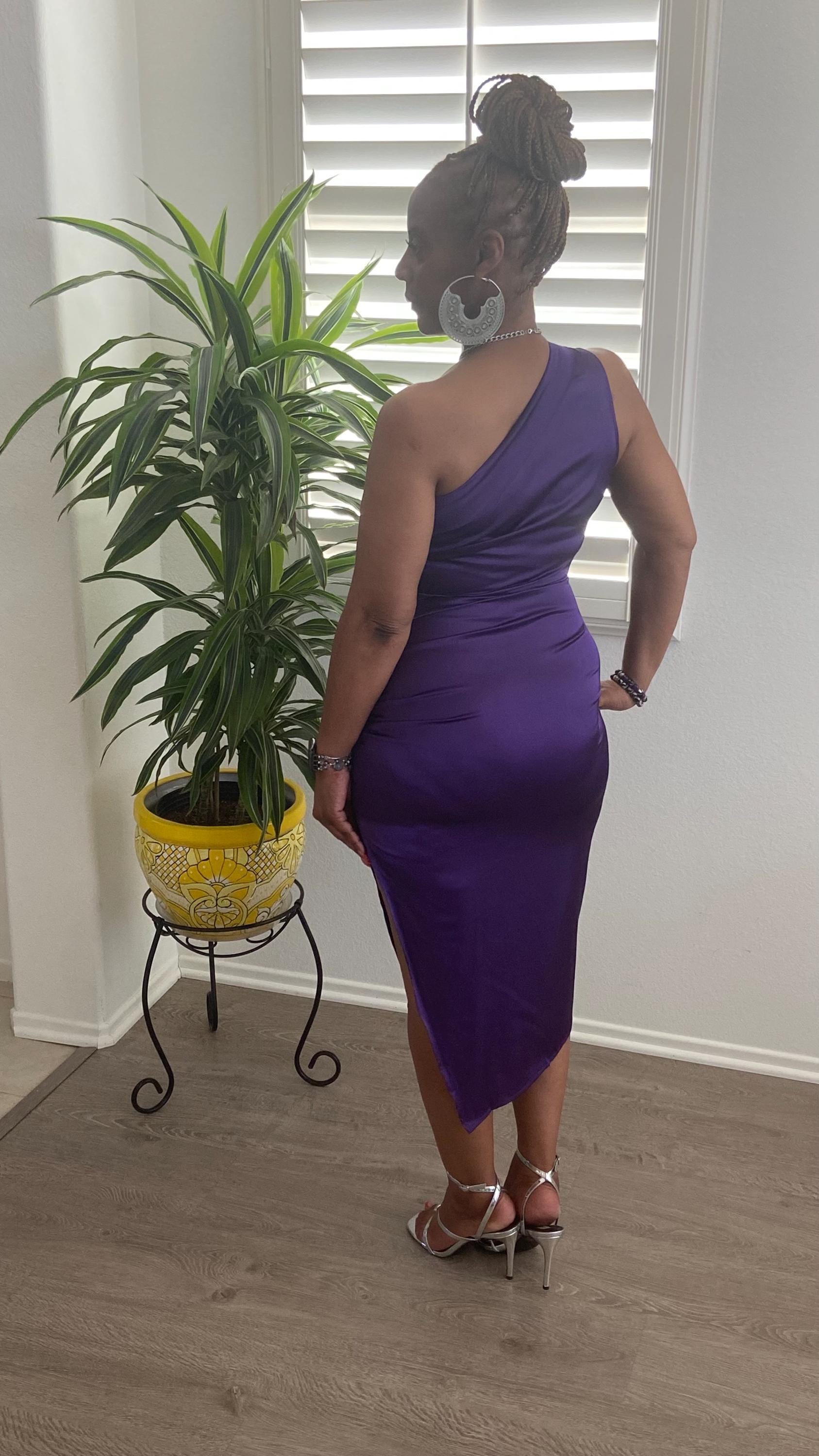 Make a Statement In Our Satin One Shoulder Party Dress, Featuring a Stylish Asymmetrical Design With Split and Side Zipper for closure. The Bodycon Ruched Style Is Perfect For Showcasing Your Curves And Creating a Feminine Silhouette.