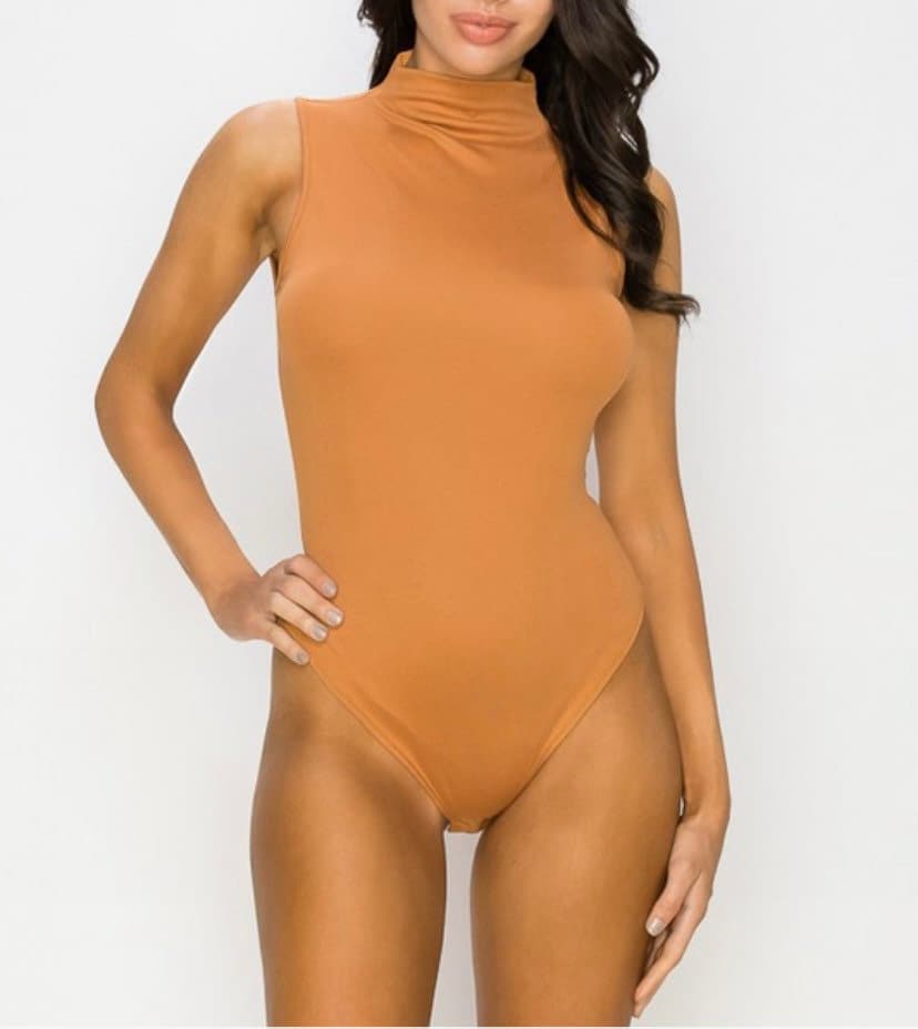Super Soft Mock Neck Sleeveless Tank Bodysuit in Terracotta/Clay color