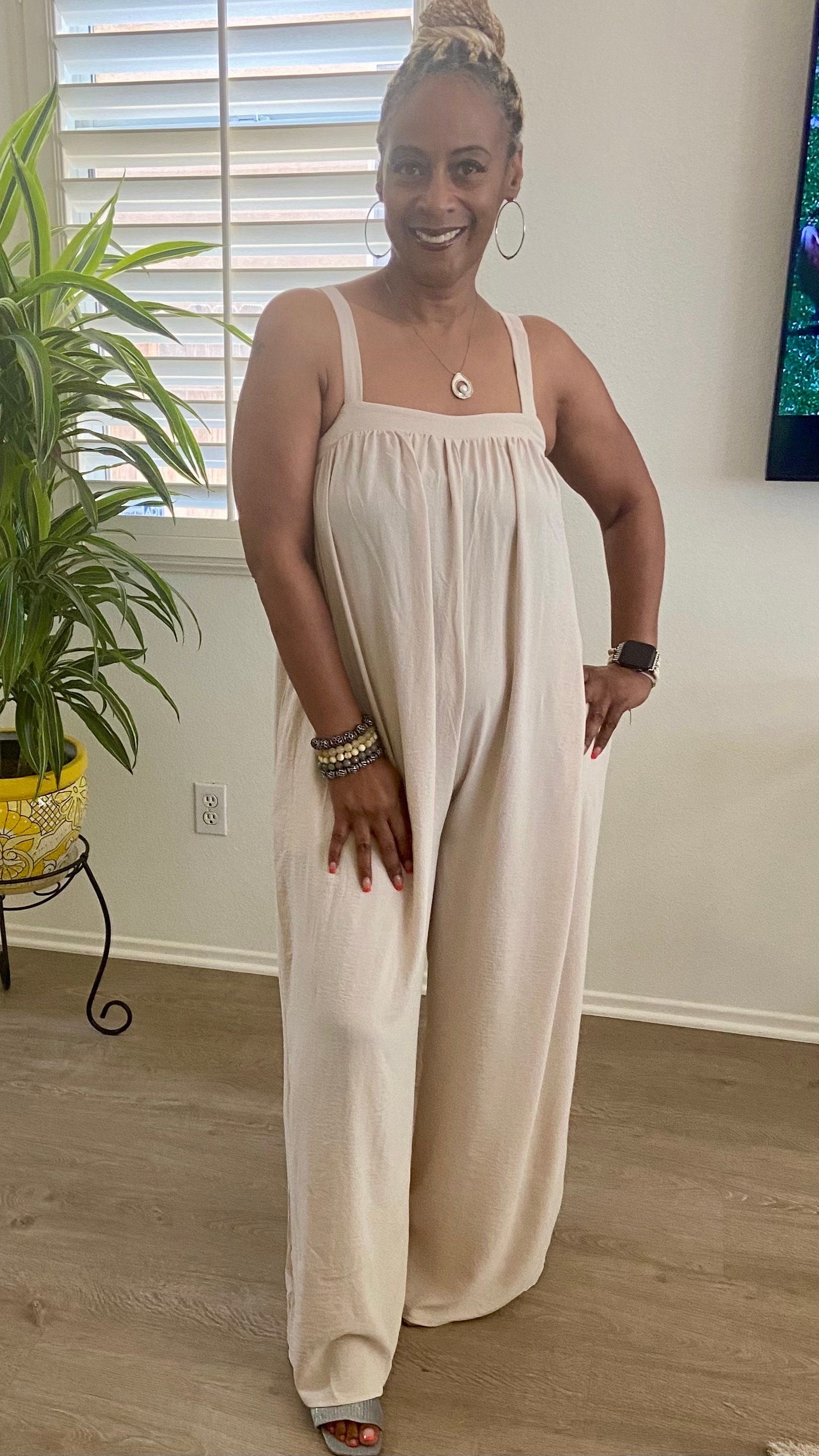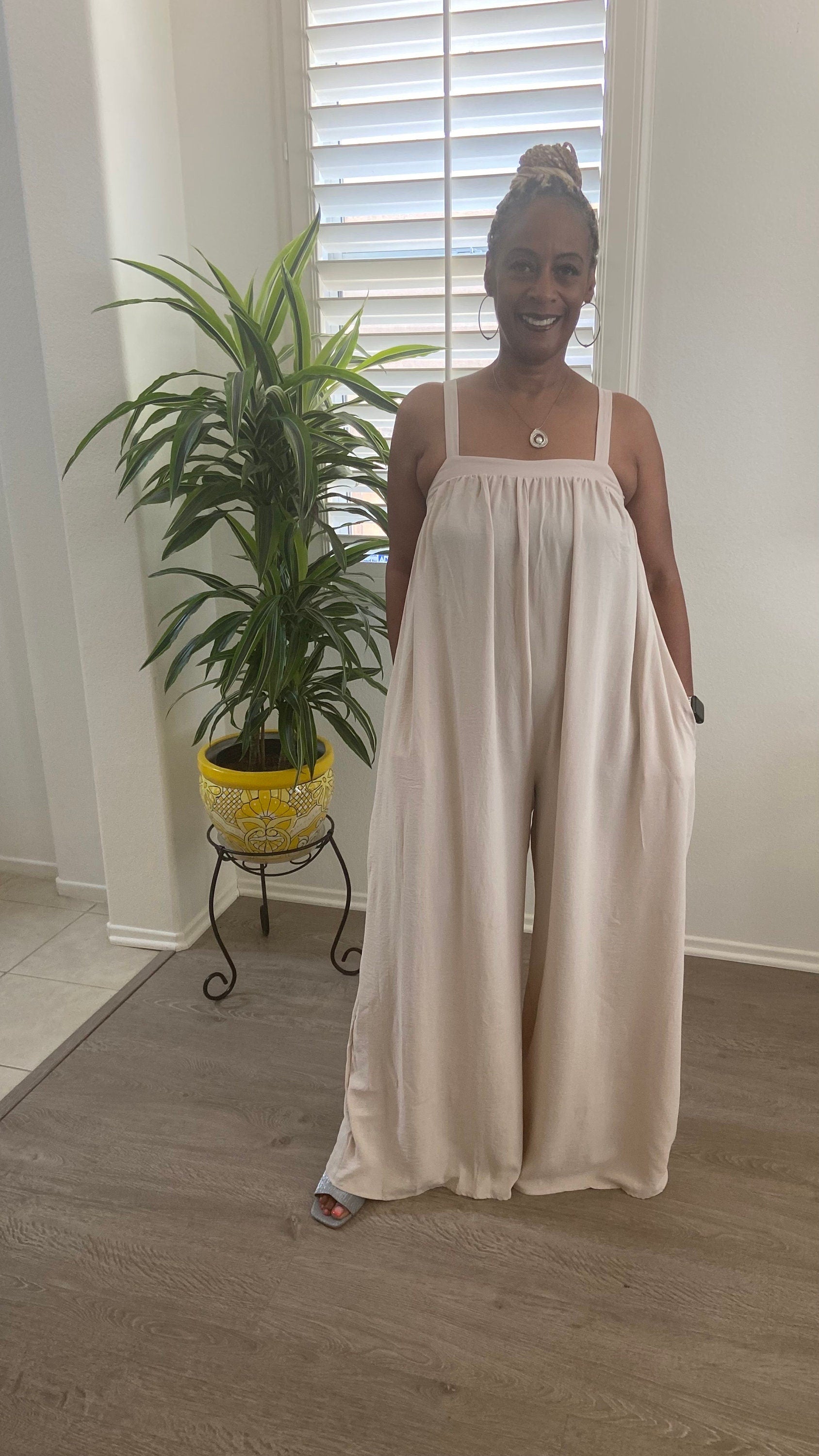 Women's Casual Loose Sleeveless Jumpsuit Spaghetti Strap Backless Wide Leg Full Length Rompers One Piece Outfits